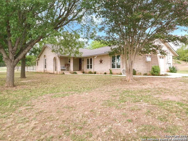 Situated on 11.8 relaxing, spacious acres is this 4 bedroom, 2.5 bath, two story, brick home waiting for you. It sits high above Bandera Creek with a view of historic Polly Peak and the surrounding countryside, making a perfect blend of indoor and outdoor living. The home was completely renovated in 2017. Features include a long, paved driveway, side, back, and front patios, 3 living areas, one of which has walls of windows. There are 2 fireplaces, a peninsula kitchen with custom Shaker style cabinets and custom concrete counter tops, a huge walk-in pantry with tons of storage, and a small appliance garage/pantry off the kitchen. Enjoy your morning coffee in the dining room where sliding glass doors allow views of your handiwork in the high fenced garden and activities of your chosen farm animals. The primary bedroom is downstairs along with another bedroom that could be utilized as anything you need or can imagine. After being a bedroom for several years, it became an art studio! The primary bedroom has his and hers walk-in closets and an ensuite, spa-like bath with step-in shower and jacuzzi tub. The 3rd living area, which used to be a "Sunroom," has been fully integrated into the square footage of the home, making a total of 3984 square feet. In that room, natural light is cool and comfortable. Upstairs are two more bedrooms and a full bath with a step-in shower that was remodeled in September 2023. Exterior and interior paint was refreshed in August 2023. There's a greenhouse and a 4-bay workshop to boot, both with power. Not far from the house is a totally rebuilt, antique guest cottage that has been host to friends and loved ones since August 2022. The studio sized cottage boasts a stained-glass window, sleeping and sitting areas, custom cabinets, retro-style appliances and decor, cooktop, microwave, covered wrap-around porch on 2 sides, shower and toilet. The guest cottage could be income producing with the addition of its own septic system. Property boundaries are well defined with iron and ranch fencing on 3 sides. 2018 brought new fences on the barnyard, on two sides of the pasture, and all new gates. Chickens are currently housed in a complete poultry enclosure with sides and top for protection. The land slopes gently down to the East boundary which is 760 feet of Bandera Creek! At the creek, everyone will enjoy the bluff, campsite with fire pit, fishing, wading, and wooded areas. An abundance of wildlife roams the property including armadillo, whitetail, Axis deer and more. High speed fiber internet is available with a choice of 3 speeds through Bandera Electric Coop. All original single pane aluminum windows were replaced in May 2022 and a new roof took residence in 2019. Inside the well house, the pressure tank was replaced after the big freeze of 2021. In addition, the property is in the direct path of the upcoming Fall Annular Eclipse and the April 2024 total eclipse. This property offers all the freshness of the country with the convenience of the city nearby. It's just close enough to town but far enough from light pollution that stargazing is at a premium. Located approximately 1 hour from the San Antonio International Airport, 45 minutes to the Medical Center, 30 minutes to Boerne, Kerrville and Hondo. Less than 5 minutes to downtown Bandera, the Cowboy Capital of the World, where the fun never sets! Plenty of shopping, a rich nightlife with name entertainment, eateries, the Medina River, volunteer opportunities, events, churches, schools and more!