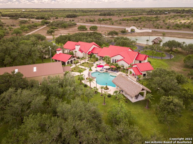This turnkey 144 acre hunting and deer breeding ranch is for sale in Goliad County, Texas. Cothern's Trophy Oaks Ranch is impeccably manicured and highly improved with resort-style amenities. The property is located just 10 miles north of Refugio, 15 miles south of Goliad, 45 minutes to Rockport, and about an hour and 45 minutes to San Antonio. Just inside the property's impressive, gated entrance on US Highway 183, there is a paved drive lined with palm trees that leads straight to a 5,039 square-foot custom home. Inside the white limestone and stucco home, you will find elegant, rustic designs over stained concrete floors. The house was completely remodeled in 2016 and features four bedrooms, three bathrooms, a bar, home gym, a camera and security system, and so much more. The luxurious backyard offers several relaxing and entertainment areas including a custom in-ground pool with a waterslide, a hot tub, outdoor cabana area, 750 square-foot screened-in outdoor chef's kitchen, a pool house, all surrounded by tropical landscaping. There is also a large pond with a tiki-themed pier directly in front of the home. A 1,700 square-foot guest house with two bedrooms and two bathrooms provides additional accommodations. There are two separate living areas and kitchens on the lower level and two separate bedrooms and bathrooms on the upper level. In addition, there is a foreman's home and a hunter's cabin with a laundry room attached. Additional improvements include a game cleaning area with a skinning rack and walk-in cooler, as well as three shops, one of which is air conditioned with an office space. Excellent ranch roads provide access to the entire high-fenced and cross-fenced property. The roads on the back half of the property have been raised up to still allow access after heavy rains. The ranch is MLDP qualified with four deer breeding pens on the property. Numerous hunting blinds and feeders are strategically placed across the ranch. Three 160 foot-deep electric wells supply the improvements on the ranch and three ponds provide ample drinking water to wildlife. Single phase and three phase electricity are in place and there is a Generac backup power system. AT&T has a tower on the property with a contract that pays the owner approximately $750/month (per seller). The utility easement that runs along the southern fence line is high fenced with its own separate gated entrance. Cothern's Trophy Oaks Ranch has an extraordinary variety of high-protein brush species, thick native grasses, and highly improved pastures, along with good water and incredible amenities in place, which create an ideal South Texas property for your recreational and hunting vision.